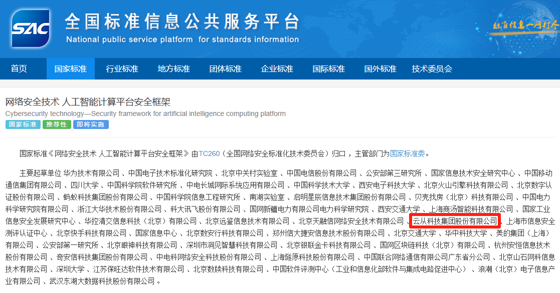 近日,國家標(biāo)準(zhǔn)GB/T 45958-2025《網(wǎng)絡(luò)安全技術(shù) 人工智能計(jì)算平臺(tái)安全框架》正式發(fā)布。該標(biāo)準(zhǔn)由全國網(wǎng)絡(luò)安全標(biāo)準(zhǔn)化技術(shù)委員會(huì)歸口管理,華為技術(shù)有限公司牽頭,云從科技作為核心起草單位之一,深度參與了標(biāo)準(zhǔn)制定工作。 這項(xiàng)將于2026年2月1日正式實(shí)施的國家標(biāo)準(zhǔn),為人工智能計(jì)算平臺(tái)建立了系統(tǒng)化的安全框架,規(guī)定了安全功能、安全管理和角色安全職責(zé),將有效應(yīng)對(duì)硬件漏洞、訓(xùn)練數(shù)據(jù)泄露、對(duì)抗樣本攻擊等新型安全威脅。